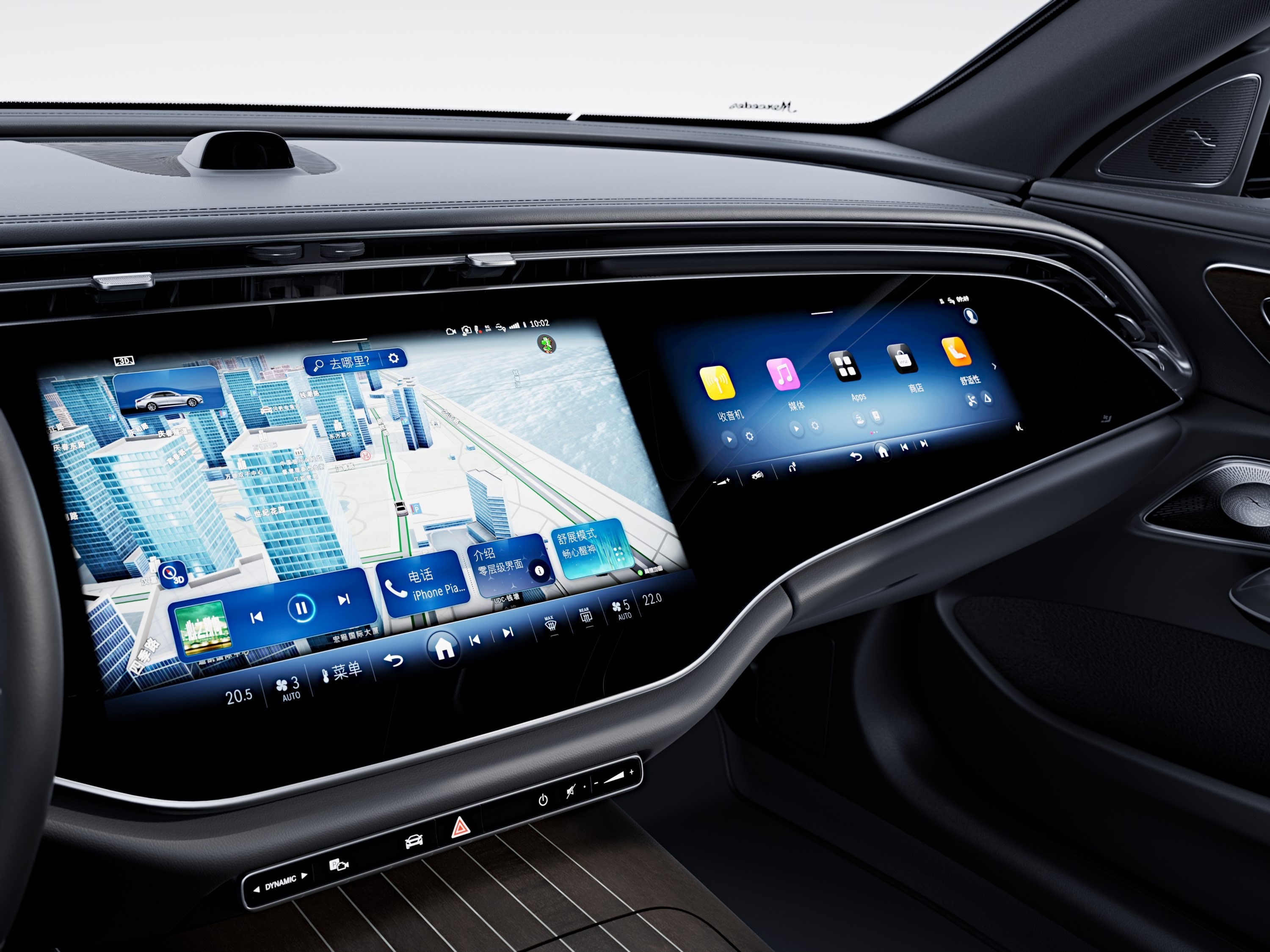 進入全新奔馳E級車內(nèi),可以說豪華+科技風(fēng)相碰撞,整體氛圍非常吸睛,而車內(nèi)最耀眼的部分自然是全新大尺寸MBUX超級屏,這塊屏幕首發(fā)搭載了第三代MBUX智能人機交互系統(tǒng),同時也是豪華品牌中首款搭載高通8295芯片的車型,從而實現(xiàn)更多第三方車載應(yīng)用的搭載,例如抖音、玩游戲等等。此外,全新奔馳E級新增自拍攝像頭,支持人臉識別以及場景模式,便于用戶通過Zoom、Webex等拍攝照片或參加視頻會議(支持5G網(wǎng)絡(luò))